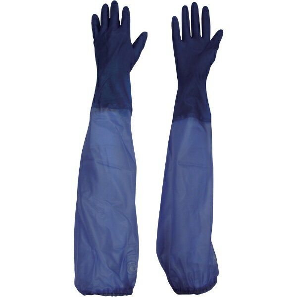 ■手袋部は塩化ビニール製のため、天然ゴム製の手袋に比べて油や洗剤に強い手袋です。■薄手タイプで手にフィットし、細かい作業にも適しています。■特殊溶着加工で手袋部分と腕カバーを溶着して一体化しているため、水が入らず汚れ・水を伴う作業に適しています。■袖口がゴムバンド付のため、作業中に脱げ落ち、ずり落ちを防ぎます。【用途】・水産加工、農業、機械。【仕様】・色: ブルー・サイズ: M・厚さ(mm): 約0.28・全長(cm): 62.0・手のひら周り(cm): 20.6・中指長さ(cm): 8.0