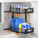 シンク下 収納 スライドラック Nuovoware スライド 2段式 省スペース キッチン下整理 引き出し 高さ調節可能 金属製 観音開き扉 洗面台