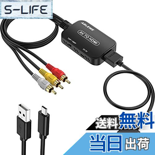 【送料無料】ABLEWE RCA to HDMI 変換コンバーター AV to HDMI コンポジット 1080/720P切り替え 音声出力可 USB給電 【日本語取扱説明書付き】3色(赤 白 黄)ビデオ/avケーブル hdmi ケーブル付き N64用 Wii PS2 Xbox VHS VCR Camera DVDなど対応 av to hdmi変換ケーブル