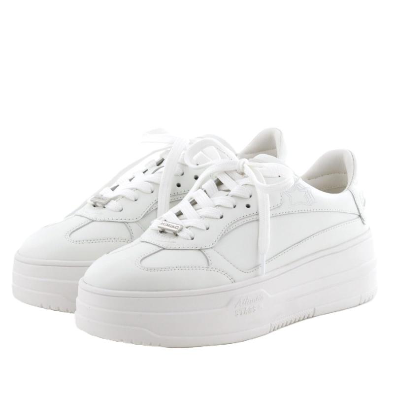 [ヒミコ] スニーカー HIMIKO/ヒミコ/厚底コートソールスニーカー【VENERE (ヴェネレ)】/607003 レディース 607003サイズ表記について<br> 大きめの作りなので、普段のサイズよりワンサイズ下のサイズを選ぶ方が多いシューズです。<br> 22.5cm = 35<br> 23cm = 36<br> 23.5cm = 37<br> 24cm = 38<br> 24.5cm = 39<br>【Atlantic STARS コラボレーションスニーカー】<br> ボリュームのある厚底ソールが目を引くコートソールスニーカー。ブラック、アイボリーはシンプルなワントーンカラーの中に、かかと部分のロゴ刺繍や履き口付近のスターモチーフプリントなどのディティールが光るデザインです。ゴールドは上質なクラッキングレザーのコンビネーションが華やかな印象に。レースにはHIMIKOロゴ入りメタルパーツつき。中敷にはコラボロゴが施された特別感のある仕上がりです。