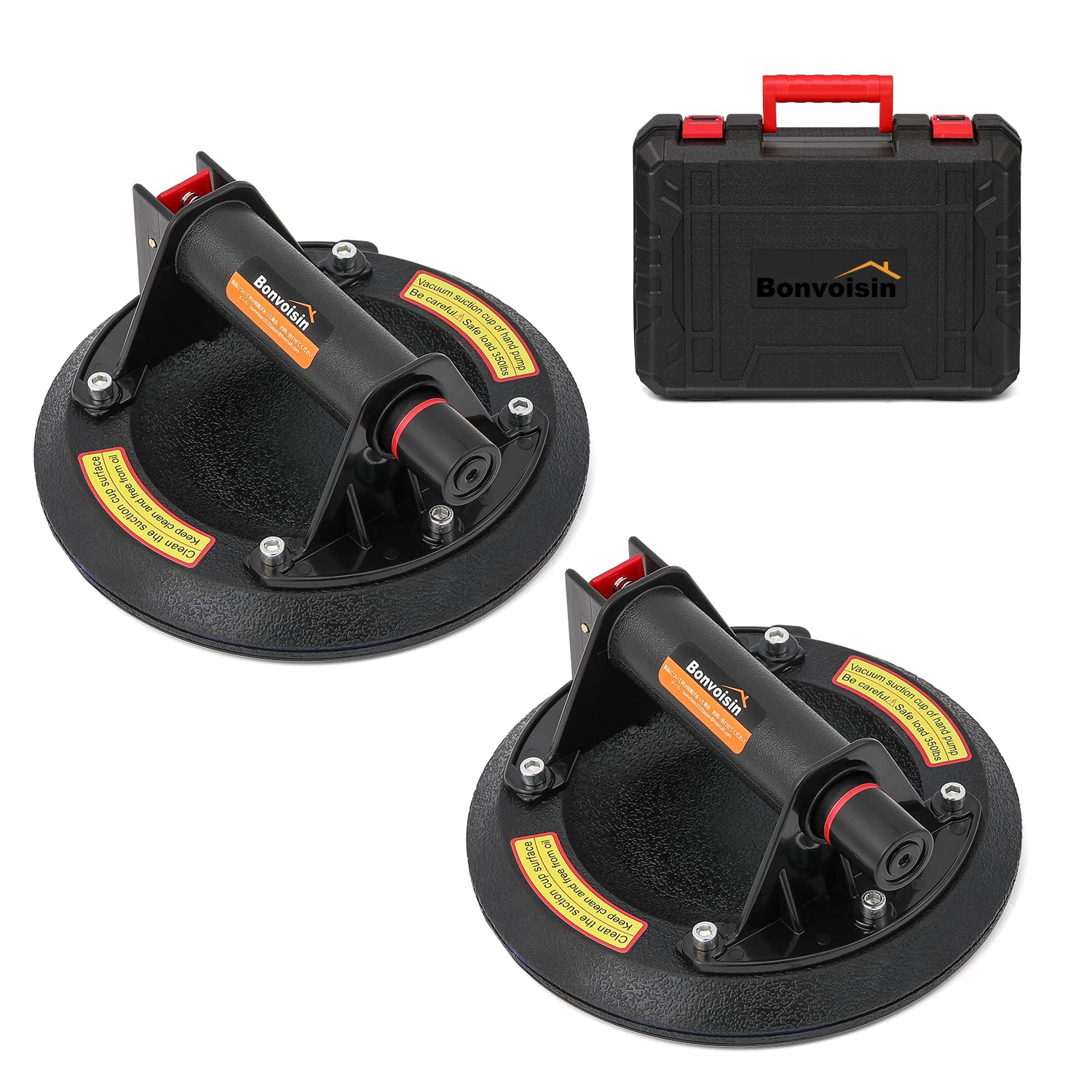 Bonvoisin バキュームリフター 2個セット 真空吸盤 サクションカップ 超強力 1個耐荷重110kg 200mm ガラス タイル 硝子 アルミ板 鉄板 マーブル 建材 荷物運搬 移動 収納ケース 日本語マニュアル