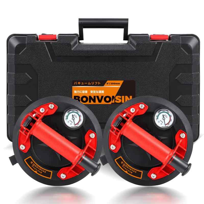 Bonvoisin バキュームリフター 2個セット 真空吸盤 手動式 1個耐荷重130kg 200mm 圧力計付き 超強力 サクションカップ ガラス タイル 硝子 アルミ板 鉄板 マーブル 建材 荷物運搬 移動 日本語マニ