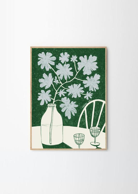 THE POSTER CLUB ポスタークラブ blue flowers & red wine 50×70cm Anouk van Cleefジークレープリントという手法でPOSTER CLUBのために特別に作成されています。ジークレープリントとはフランス語で「吹き付けて色を付ける」という意味で、版を用いずに刷り上げるのが特徴です。デジタルデータを上質なナチュラルアート紙に印刷しており、コーティングされていない仕上げと軽い質感を楽しめます。当店ではポスターの魅力を引き立てるシンプルなポスターフレームもご用意しております。ぜひ合わせて飾ってみてくださいね。フレームは別売りです。セットではございません。