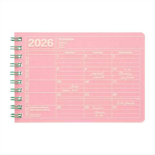 【2026年1月始まり】 マークス(MARK'S) ノートブックカレンダー XS マンスリーブロック 26WDR-NB14-PK ピンク 月曜始まり