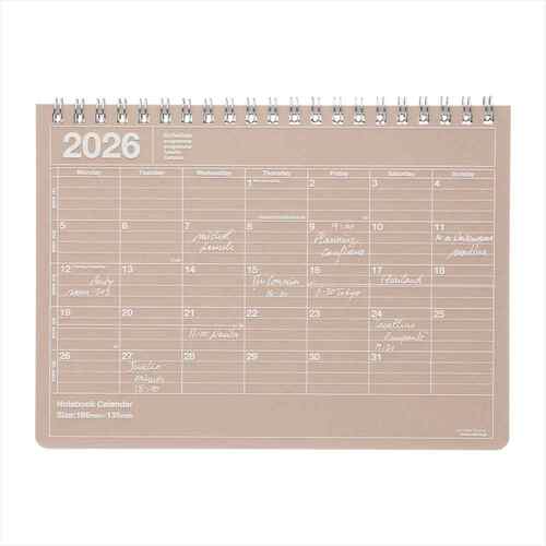 詳細説明【特長】・B6変型のノート型カレンダーです。・持ち運びに便利なSサイズ。・カレンダー裏面は、横罫メモになっています。 【内容】・祝日表示(日・米・英・仏・伊・西・独・中国・香港・韓国 海外祝日はアイコン表示)・ウィークナンバー・年間カレンダー・罫線メモ(カレンダー裏13枚+3枚) 商品仕様(スペック)カラー:ブラウン本体サイズ(約):縦135x横186x奥10mmページ数:32ページ中面仕様:[月間]ブロック六曜表記:なし表紙素材:PP、紙対応期間:[月間]2026年01月〜2026年12月定番人気のロングセラーアイテム