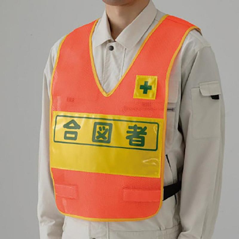ユニット 反射表示付ベスト(蛍光オレンジ)合図者 ナイロンメッシュ 379691