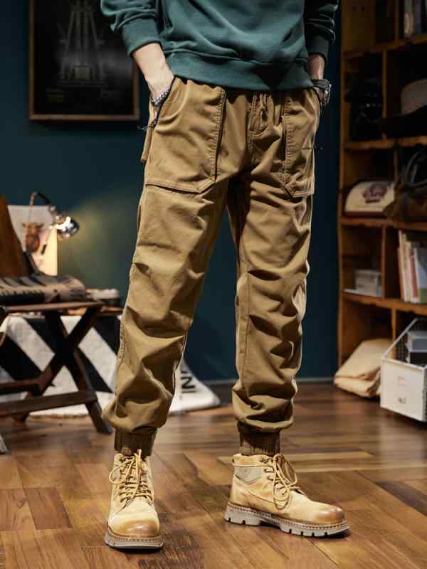 ・スタイル: アメリカンヴィンテージ・カテゴリ: カーゴカジュアルパンツ・シルエット: ルーズフィット・丈: フルレングス・ウエスト: ミドルウエスト・フロント: ドローストリング・厚さ: 裏起毛・柄: 無地・主な素材: 綿97%・着用シーン: カジュアル・裾: ストレート・加工: 染色・ディテール: ポケット装飾・伸縮性: 微ストレッチ・カラー展開: ミリタリーグリーン、ブラック、グレー、カーキ・サイズ展開: 28, 29, 30, 31, 32, 33, 34, 36, 38・機能: 耐摩耗性、形状安定、高色堅牢度・対象年齢: 成人・性別: メンズ