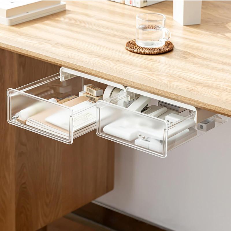 AooYo 机下 引き出し 2個セット デスク下 収納ボックス 16.8*20*7.3cm 引き出し式 ミニ 机下収納 隠し引き出し 小物入れ トレイ 文房具 事務用品 リモコン 便利 小物 収納ホルダー 両面テープ付き
