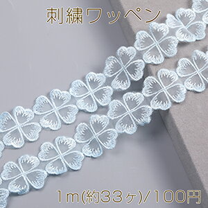 刺繍ワッペン クローバー 幅約3cm ブルー 1m(約33ヶ)