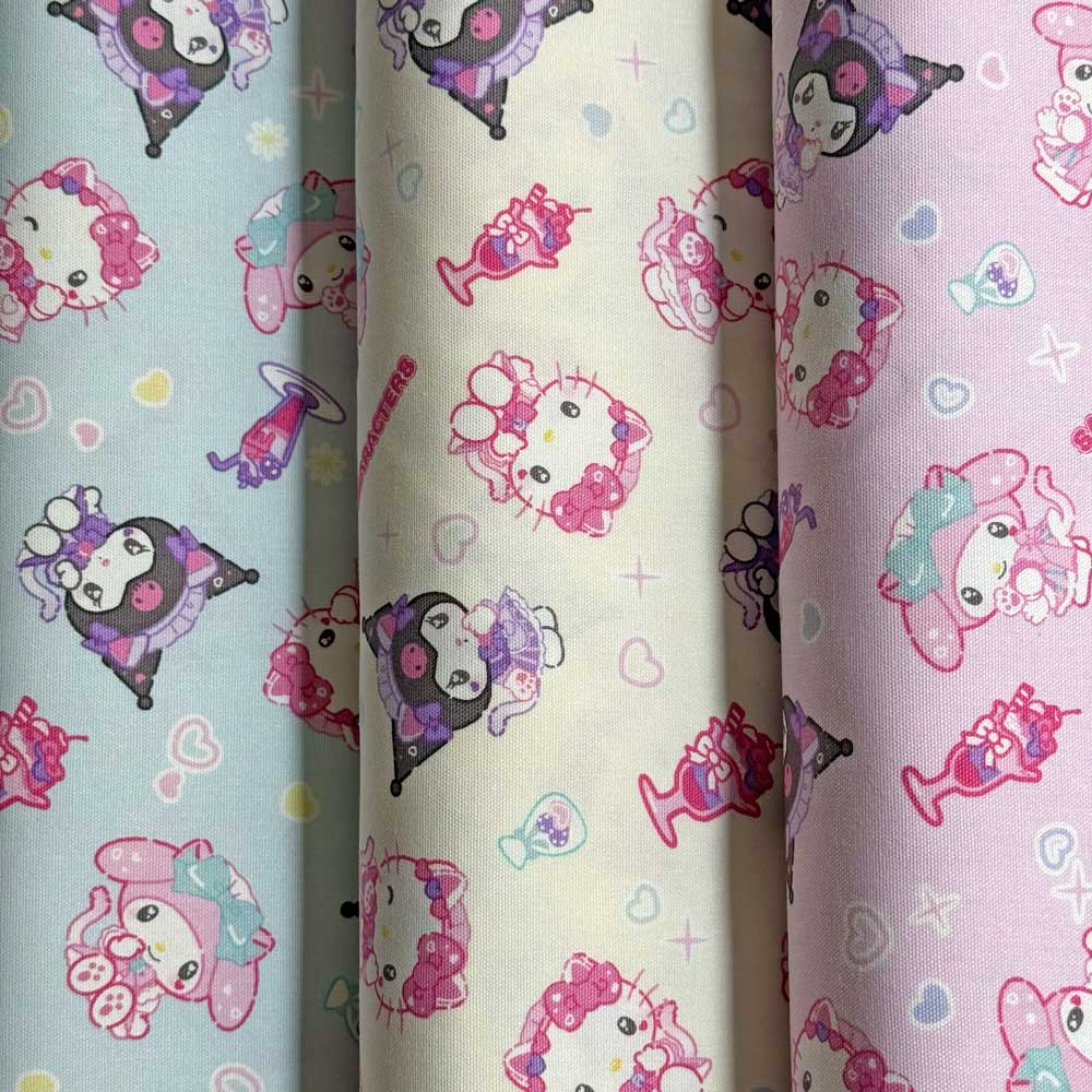 サンリオオールスターズ ねこみみメイドカフェ柄 オックス生地 ブルー/アイボリー/ピンク(サンリオキャラクター/ハローキティ/マイメロディ/クロミ/入園入学通園通学)832087 832094 832100