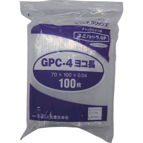 [チャック付ポリ袋](株)生産日本社 セイニチ 「ユニパックGP」E−4 ヨコ長 100×140×0.04 100枚 GPE4YOKONAGA 1袋【829-0161】