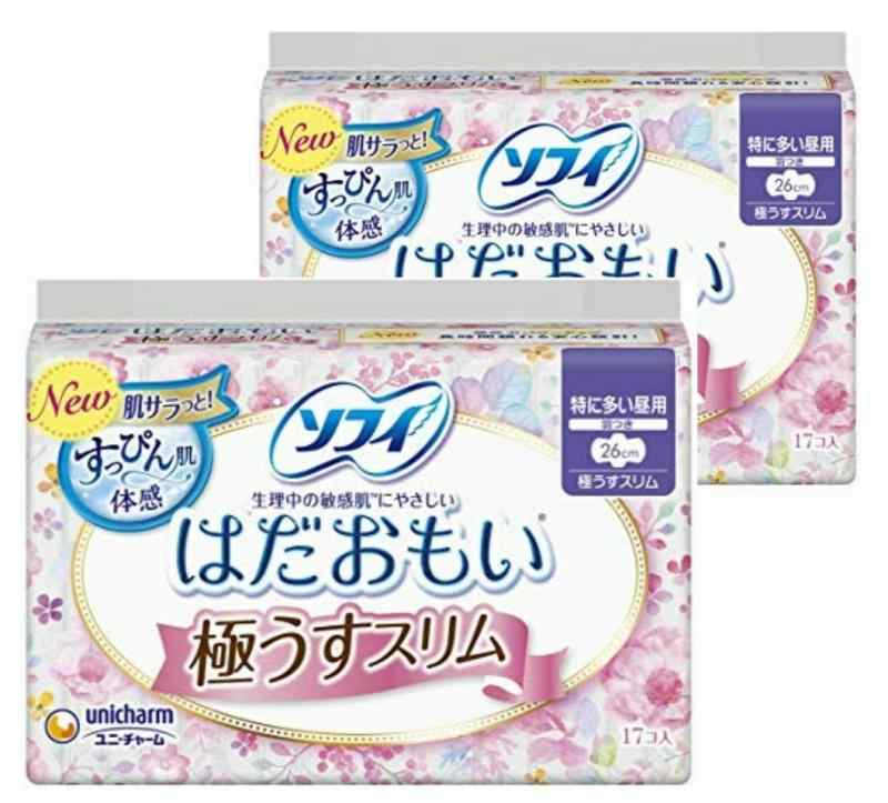【まとめ買い】ソフィ New肌サラっと! はだおもい 極うすスリム 260 特に多い昼用 羽つき 26cm 17コ入×2個パック(unicharm Sofy)