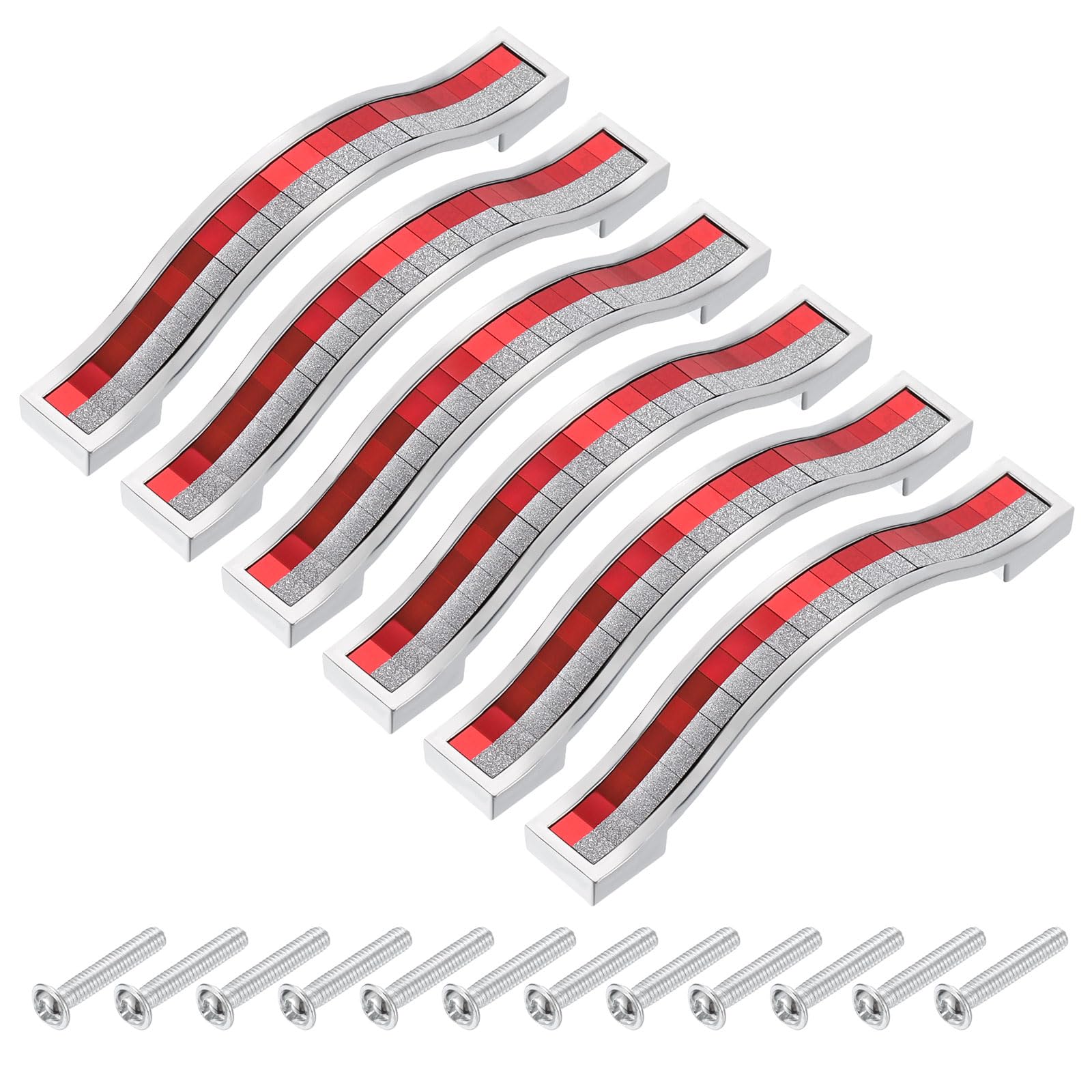 Tキャビネット引き出しハンドル 96mmホールセンター 合金水晶レッド 6個セット