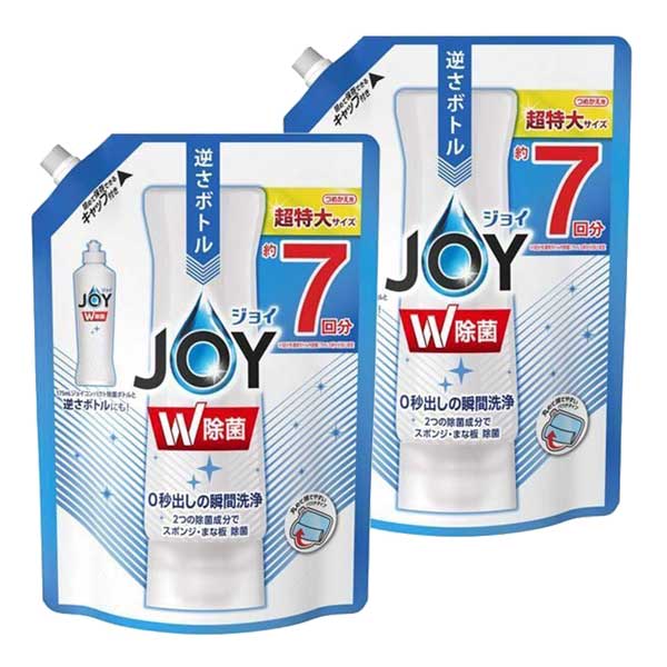 【2セット】 除菌ジョイ コンパクト つめかえ用 超特大 910ml P&G JOY 食器用洗剤 油汚れ 除菌 ウイルス除去 消臭 ニオイ すっきり 詰め替え 詰替 キャップ付き 泡立ち 大容量 洗浄力 簡単 ストック スポンジ ふきん まな板 除菌 お皿 コップ