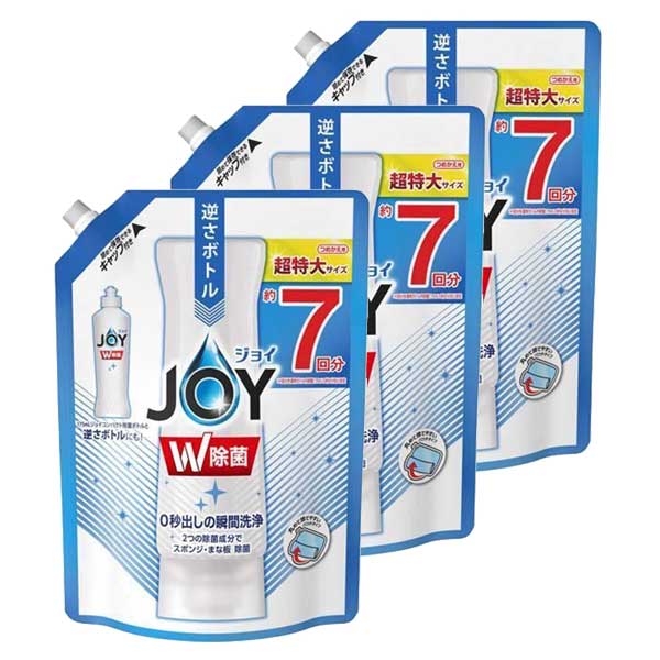 【3セット】 除菌ジョイ コンパクト つめかえ用 超特大 910ml P&G JOY 食器用洗剤 油汚れ 除菌 ウイルス除去 消臭 ニオイ すっきり 詰め替え 詰替 キャップ付き 泡立ち 大容量 洗浄力 簡単 ストック スポンジ ふきん まな板 除菌 お皿 コップ