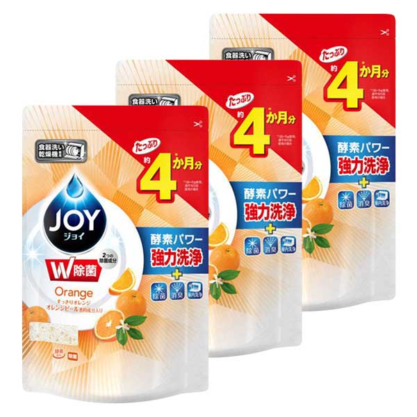 【3セット】 食洗機用 ジョイ オレンジピール成分入り つめかえ用 490g P&G JOY 食器用洗剤 食洗機用 食器洗い機用 粉末タイプ 強力除菌 消臭 ファブリーズ 共同開発 大容量 洗浄力 食器 庫内 洗浄 汚れ こびりつき すっきり オレンジ 爽やか