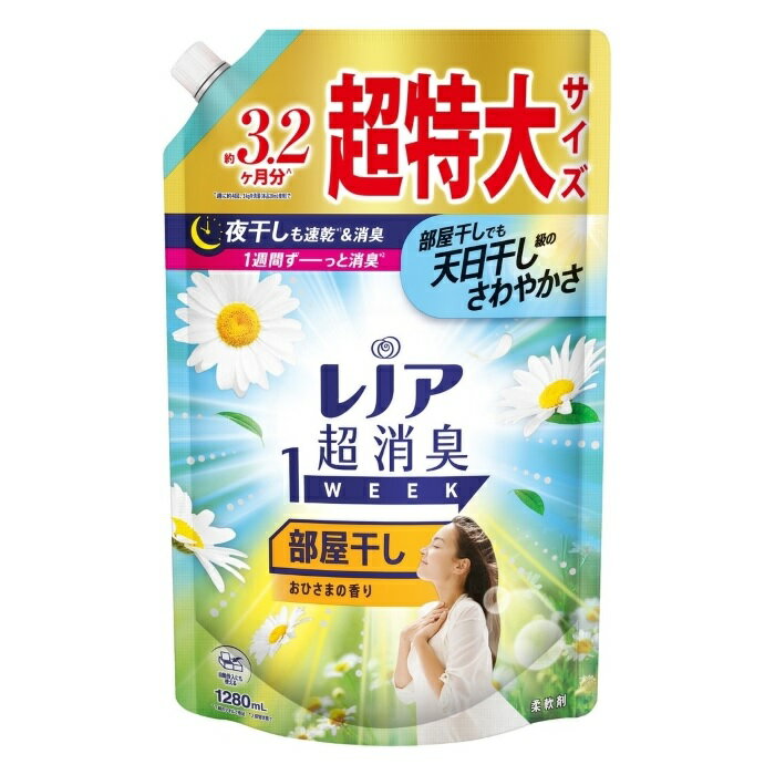 レノア超消臭1WEEK 部屋干し用 おひさまの香り つめかえ 超特大サイズ 1,280mL 柔軟剤 レノア 部屋干し 詰め替え P&G 洗濯 衣料用 消臭 抗菌 シーツ 枕カバー パジャマ 汗 臭い 大人気 香り 放置臭 花粉 静電気 部屋干し におい フレッシュ 大容量
