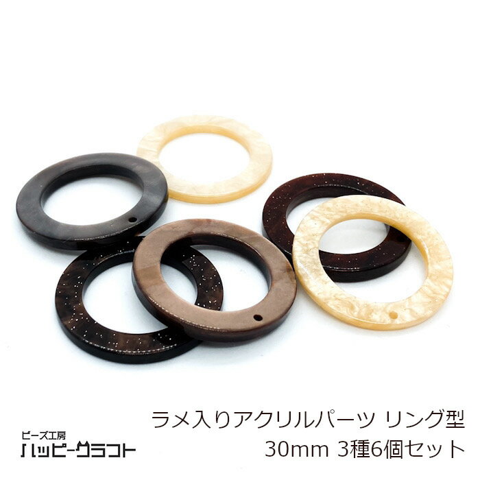 アクリルパーツ くり抜き ラメ入りリング 30mm 3種6個セット ミックス 大きめ 丸 サークル 穴有り フレーム プレート チャーム ラウンド 円 くりぬき イヤリング ピアス キーホルダー アクセサリー パーツ 手芸 手作り ハンドメイド 材料 素材 S-064