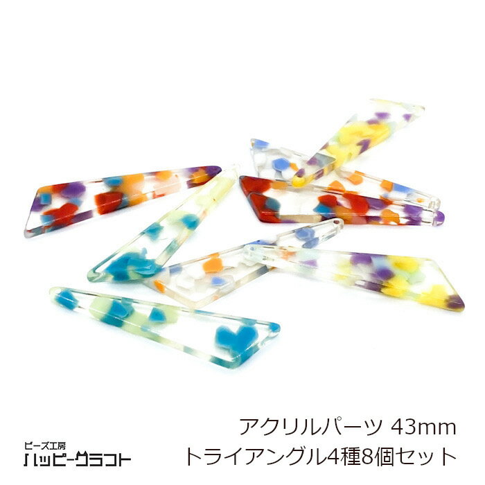 アクリルパーツ トライアングル 43mm 4種8個セット マーブル 三角 変型 穴開き プレート チャーム イヤリング ピアス ストラップ アクセサリー パーツ 手芸 材料 素材 ハンドメイド S-080