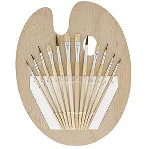 U.S. Art Supply 12-Piece Artist t Brush Set with 9" x 12" Wood ting Palette - 12 Premium Round & Flat Bristle tbrushes - Fun Kids, Adults, Students, School Teachers, Beginners, Starter Kit