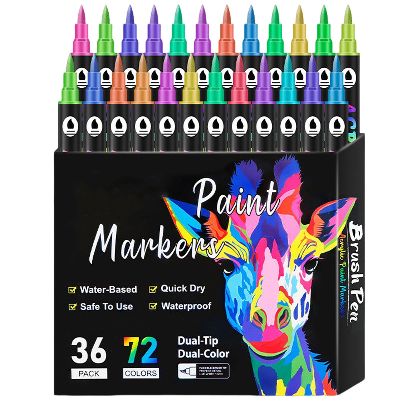 アートマーカー - 両面マーカー|防水スケッチペン、アクリルペイントマーカーペン、アダルトアートマーカーペンキッズアクリル着色スケッチアーティストのための描画マーカー両面マーカース