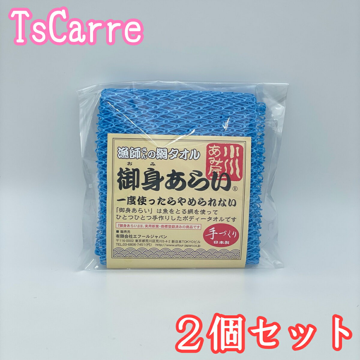 商品情報セット内容漁師さんの網タオル 御身あらい(ブルー) × 2特徴石鹸、ソープは少しで抜群の泡立ち使用感!すすぎが簡単・丈夫で長持ち・環境に優しい。使用方法●網をお湯に浸し石鹸をつけ、網を揉み泡立ててご使用下さい。●使用後はよくすすいで下さい。注意事項●皮膚の弱い方は強くこすり過ぎないで下さい。●異常がある場合は使用をやめ皮膚科などにご相談下さい。●若干の色落ち、染めむらがございます。サイズ[使用前] 約37×12cm[使用後] 約110×5cm素材本体・ひも:ナイロン 100%生産国日本メーカー名有限会社エフールジャパン広告文責株式会社TプロTEL: 03-3425-8796E-mail: shop@tpro.club漁師さんの網タオル 御身あらい(ブルー) 2個セット エフールジャパン 小川漁網商店 漁師さんの網タオル 御身あらい ブルー ボディタオル 手づくり 日本製 2個セット 漁師さんが海で使う本物の漁網を使って作りました。ひとつひとつ手作りの浴用ボディタオルです。本物の漁網を使用しているために耐久性や水切れもよく、泡立ちに優れ大変衛生的です。両手ひもがついていますので、体のすみずみまで簡単に洗え、網目が心地よい刺激となって快適なバスタイムがお楽しみいただけます。地球環境にも優しい商品です。※こちらの商品はゆうパケットで発送させていただきます。日時指定はできませんので予めご了承ください。 5