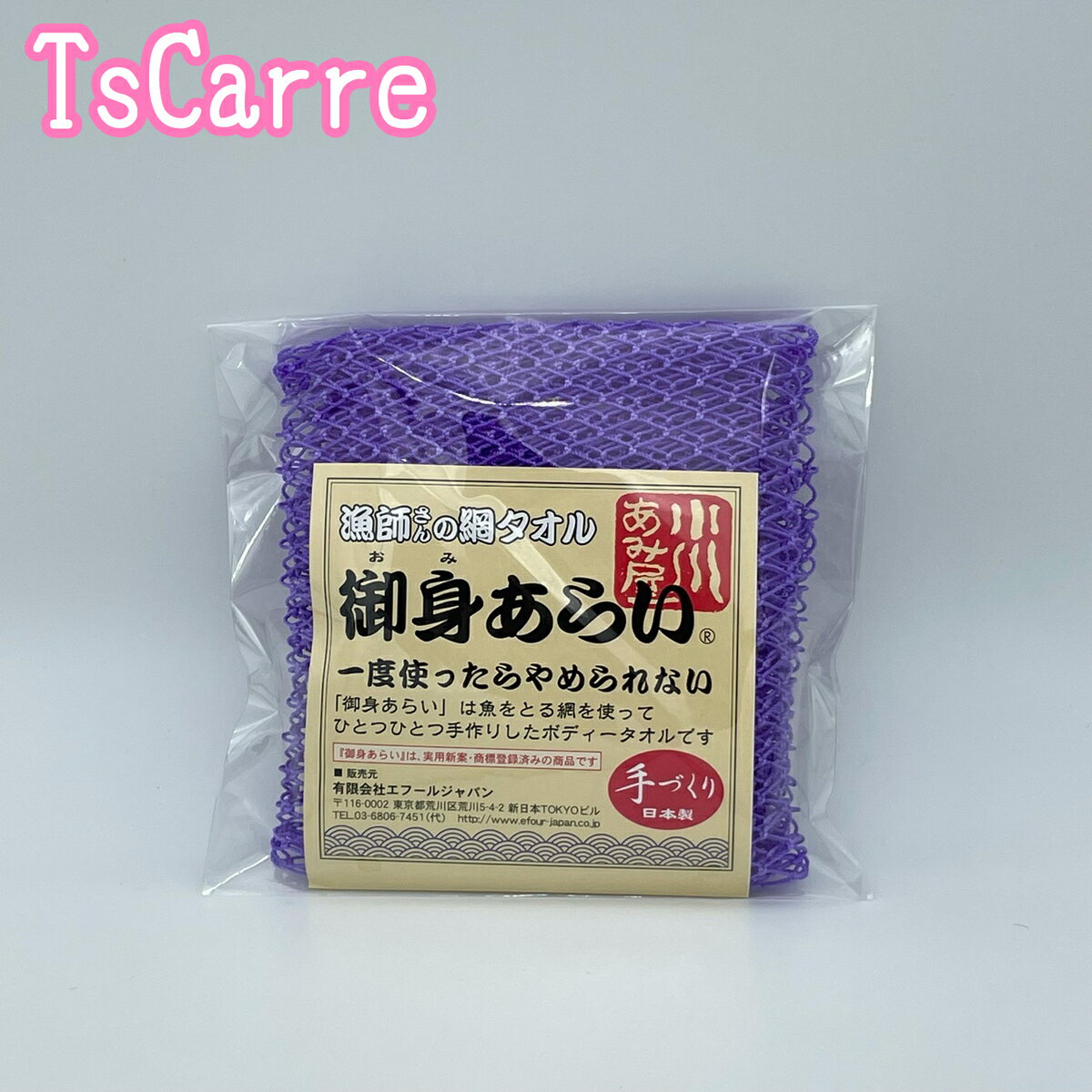 商品情報特徴石鹸、ソープは少しで抜群の泡立ち使用感!すすぎが簡単・丈夫で長持ち・環境に優しい。使用方法●網をお湯に浸し石鹸をつけ、網を揉み泡立ててご使用下さい。●使用後はよくすすいで下さい。注意事項●皮膚の弱い方は強くこすり過ぎないで下さい。●異常がある場合は使用をやめ皮膚科などにご相談下さい。●若干の色落ち、染めむらがございます。サイズ[使用前] 約37×12cm[使用後] 約110×5cm素材本体・ひも:ナイロン 100%生産国日本メーカー名有限会社エフールジャパン広告文責株式会社TプロTEL: 03-3425-8796E-mail: shop@tpro.club漁師さんの網タオル 御身あらい(パープル) エフールジャパン 小川漁網商店 漁師さんの網タオル 御身あらい パープル ボディタオル 手づくり 日本製 漁師さんが海で使う本物の漁網を使って作りました。ひとつひとつ手作りの浴用ボディタオルです。本物の漁網を使用しているために耐久性や水切れもよく、泡立ちに優れ大変衛生的です。両手ひもがついていますので、体のすみずみまで簡単に洗え、網目が心地よい刺激となって快適なバスタイムがお楽しみいただけます。地球環境にも優しい商品です。※こちらの商品はゆうパケットで発送させていただきます。日時指定はできませんので予めご了承ください。 5