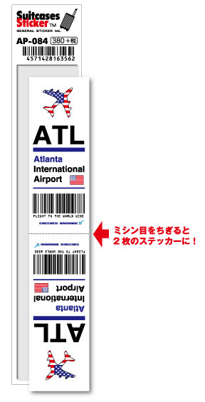 AP084 ATL Atlanta アトランタ国際空港 North America 空港コードステッカー 旅行 空港 エアポート スリーレター 3LTR グッズ