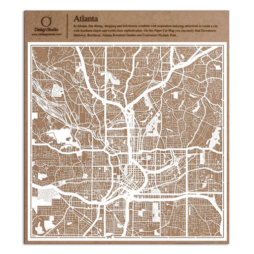 アトランタ切り絵地図、白、30x30センチ、オリジナルデザインペーパーアート、アイデアギフト