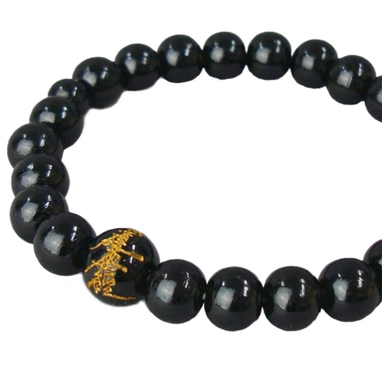 黒檀 数珠ブレスレット 共玉 8mm玉 桐箱入 題目彫り 金字 数珠ブレス 京念珠 腕輪数珠 腕輪念珠 Bracelet 南無妙法蓮華経