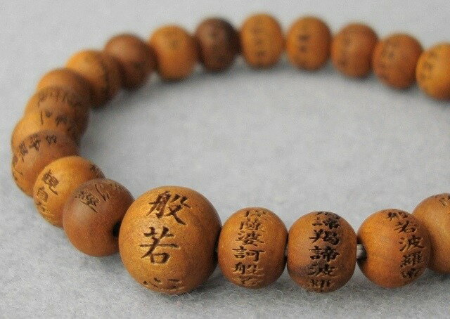 【送料無料♪】 数珠ブレスレット 白檀 8ミリ玉 般若心経彫 京念珠 腕輪念珠 腕輪数珠 Bracelet 女性用 男性用 レディース メンズ 木製 天然木 お香 白檀 サンダルウッド 般若心経ブレスレット 木製ブレスレット商品説明 ☆レーザーで「般若心経」が彫られています! デザインがお念珠のミニチュア版になっています。京念珠 腕輪念珠 腕輪数珠 Bracelet 木製 天然木 香 白檀 / サンダルウッド サイズ 腕回り : 約 16,5センチ 11×10ミリ玉 × 1粒 【般若心経】 8×7ミリ玉 × 23粒 【般若心経】 7×5ミリ玉 × 2粒 素材 【白檀】 【サンダルウッド】 日本語 : 白檀 びゃくだん 英語 : サンダルウッド 産地 : インド、インドネシア、オーストラリア 【レーザー彫】 般若心経 概要 【般若心経】 般若心経は仏教の精髄を説いた経典です。 その字句は真理の中の真理であり、不思議な霊力を持ちます。 般若心経は、約600万字の大教典を圧縮したもの。 また、般若心経を読むことで、600巻にも及ぶ大般若経全部を読むに等しい絶大な功徳が得られると古来よりいわれてます。 【白檀】 【サンダルウッド】 清楚、優雅、幽玄な甘い香りが特徴で、その香りは優れた持続性をもち、心をリラックスさせると言われています。 ヨガやアーユルヴェーダの瞑想や宗教的儀式によく用いられます。 付属品 ☆プラスチックケース入り 宗派 すべての宗派で使える、数珠ブレスレット・天然木 木製 ブレスレットです。 備考欄 京都珠数製造卸組合加盟店 謹製 ※ 実物と画像イメージは色味が多少異なる場合がございますのでご了承下さい。