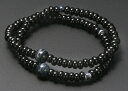 【メール便送料無料♪】 数珠ブレスレット 黒檀 黒縞瑪瑙 108珠 京念珠 腕輪念珠 腕輪数珠 Bracelet 天然石 黒縞瑪瑙 木製 天然木商品説明 ☆メール便送料無料♪ ※メール便発送の商品です!! 「日時指定不可」「代引利用不可」 ご了承ください。 デザインがお念珠のミニチュア版になっています。 京念珠 腕輪数珠 腕輪念珠 数珠ブレスレット パワーストーン数珠 パワーストーンブレスレット 天然石ブレスレット サイズ 約 17センチ (内周) 5ミリ×3ミリ玉× 108粒 【黒檀】 8ミリ玉× 2粒 【黒縞瑪瑙】 【ブラックアゲート】 4ミリ玉× 4粒 【黒縞瑪瑙】 【ブラックアゲート】 素材 【黒縞瑪瑙】 【ブラックアゲート】 産地 : ブラジル ・ インド 正式名称 : 天然クォーツ(多結晶質)・ ブラックアゲート 【黒檀】 産地 : 南米アマゾン 正式名称 : エボニー オペロンゴムを3重に通しております。 オペロンゴムは、繊維状のゴムを幾重にも束ね、 石の「吸い付き」を良くしたゴムです。 概要 【黒縞瑪瑙】 【ブラックアゲート】 日本では、『瑪瑙(めのう)』と呼ばれます。 アゲートは微細な石英の結晶が集まってできた石で、カルセドニと基本的に同じ鉱物なのですが、色むらが少なく一定のものをカルセドニ、縞などの様 が存在するものをアゲートと呼んで区別しています。 【黒檀】 (艶有り) 高級木材『唐木』の代表格が、この黒檀です。 一般に流通している木材の中では、 最高の強度と重さを誇る銘木材です。 黒檀とは黒い心材を持つカキノキ科木材の総称で、 色合によって四種類に分類されています。 【108珠】 人間には108の煩悩があると言われております。 念珠の珠は正式には108玉あり、 一つ一つが108の煩悩を司る仏様を表していますので、 人間のあらゆる煩悩を念珠が受けてくれると言われております。 付属品 ☆プラスチックケース入り 宗派 すべての宗派で使える、数珠ブレスレッド・パワーストーン数珠・パワーストーンブレスレッド・天然石ブレスレットです。 備考欄 京都珠数製造卸組合加盟店 謹製 ※実物と画像イメージは異なる場合がございますのでご了承下さい。