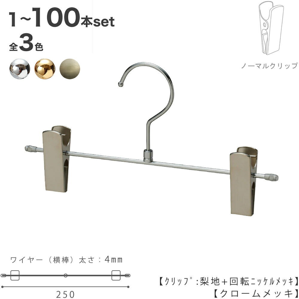【ボトムハンガー キッズ】子供 ベビー ハンガー ズボン用 スカート BSK-503R-25-NCクローム/ゴールド/アンティークゴールド 1本〜100本プロ仕様 すべらないフック回転 日本製 収納 ハンガーのタヤ クリップスライド可能