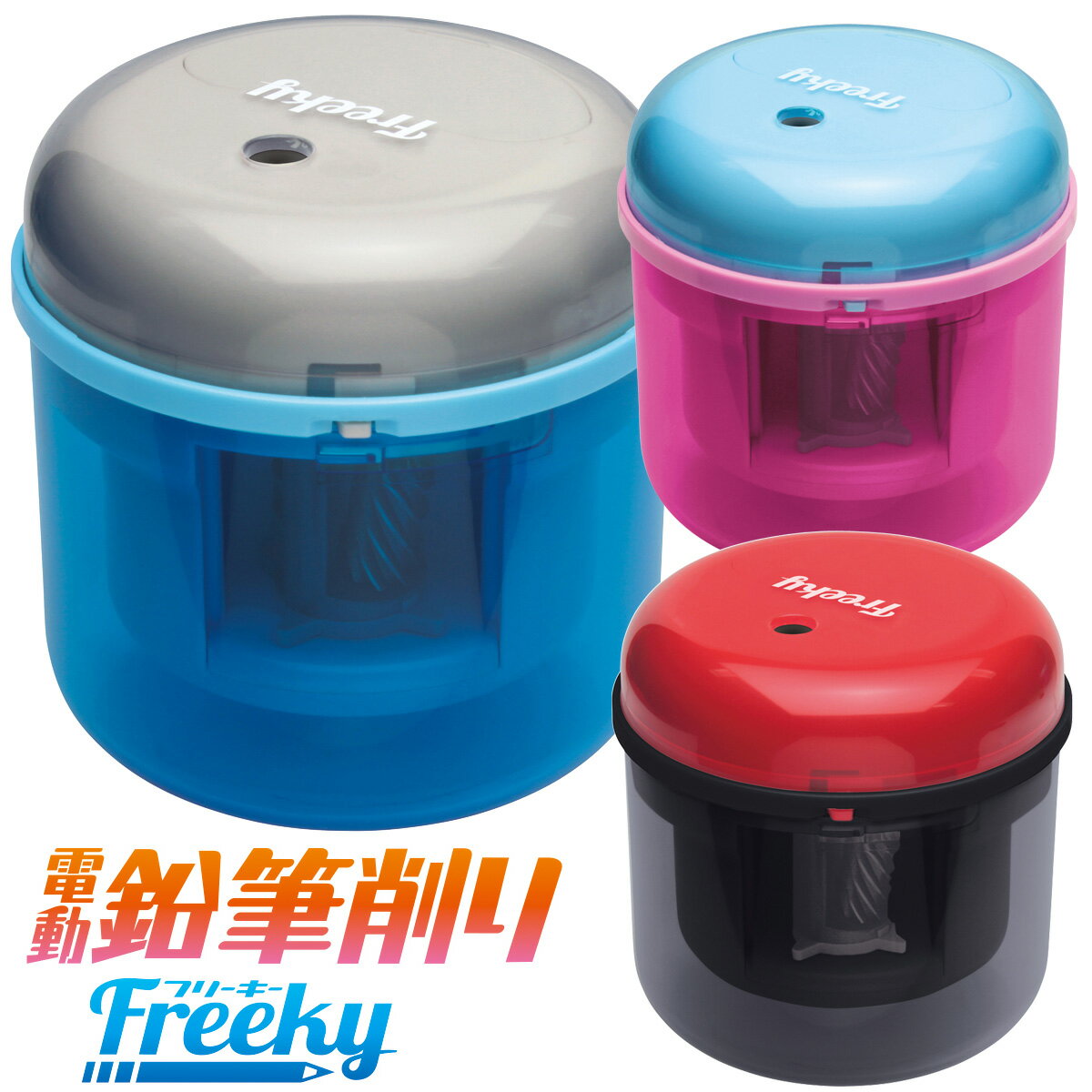 鉛筆削り器 電動 文具 文房具 子供 小学生 男の子 女の子 キッズ おすすめ ソニック えんぴつ 削り 学校用品 フリーキー 乾電池式電動鉛筆削り SK-4928-B SK-4928-P SK-4928-D ソニック sonic