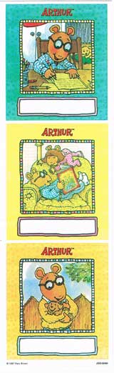 アーサーのステッカーです。PBS kidsで放送されている子供向けアニメーション。名前シールなどに。シール1枚あたり約ヨコ4.5×タテ5cmアーサー ネームステッカー Arthur pbs kids