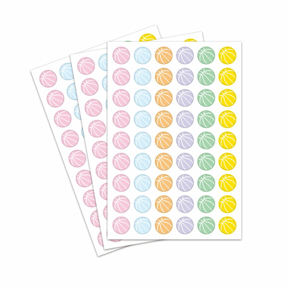 Φ10mm シール カラフル ボール バスケットボール 54個付×3枚[色紙 手帳 スケジュール ステッカー バスケ かわいい 文房具 文具 バスケグッズ バスケ用品 卒業記念品 卒団記念品 卒部 プレゼント プチギフト プチプレゼント 子供 キッズ