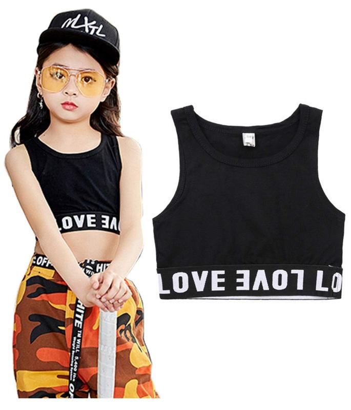 [] [インソミラ] 子供服 ハーフ タンク キッズ 女の子 ダンス ヒップホップ スポーツ ステージ衣装 ジャズダンス 小学校 重ね着 キャミソール 黒 白