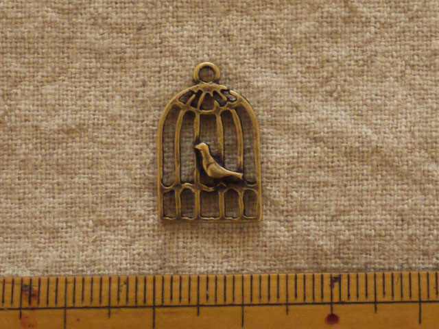 【メール便対応】金古美カラー アンティーク風 チャーム 1個 【bird cage】