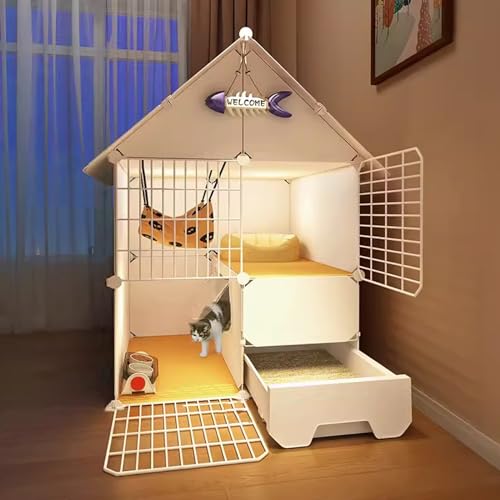 猫ケージ、cat Cage、ゲージ 猫、猫 ケージ トイレ付き、屋内猫囲い、トイレ付き猫ケージ、三角屋根付き猫ケージ、金属猫小屋フェレット囲いチンチラケージ、大型運動場 (Size : * * cm)