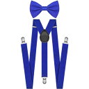 [QCWQMYL] サスペンダー メンズ レディース 蝶ネクタイ 2点セット 25mm 男女兼用 錆びない フック式 ズボン吊り カジュアル 無地 ベルト ブルー