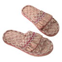スリッパ 室内用 春秋 家庭用 リネン コットン 静音 フローリング 三層底 厚手 布製 寝室 綿 チェック フリル メンズ レディース 赤 青 茶 柔らかい