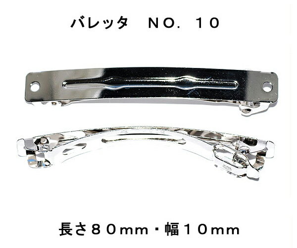 アクセサリ−パーツ ヘアー用金具 バレッタ NO10 長さ80mm幅10mm 銀色 シルバーカラー 10コ入りサービスパック