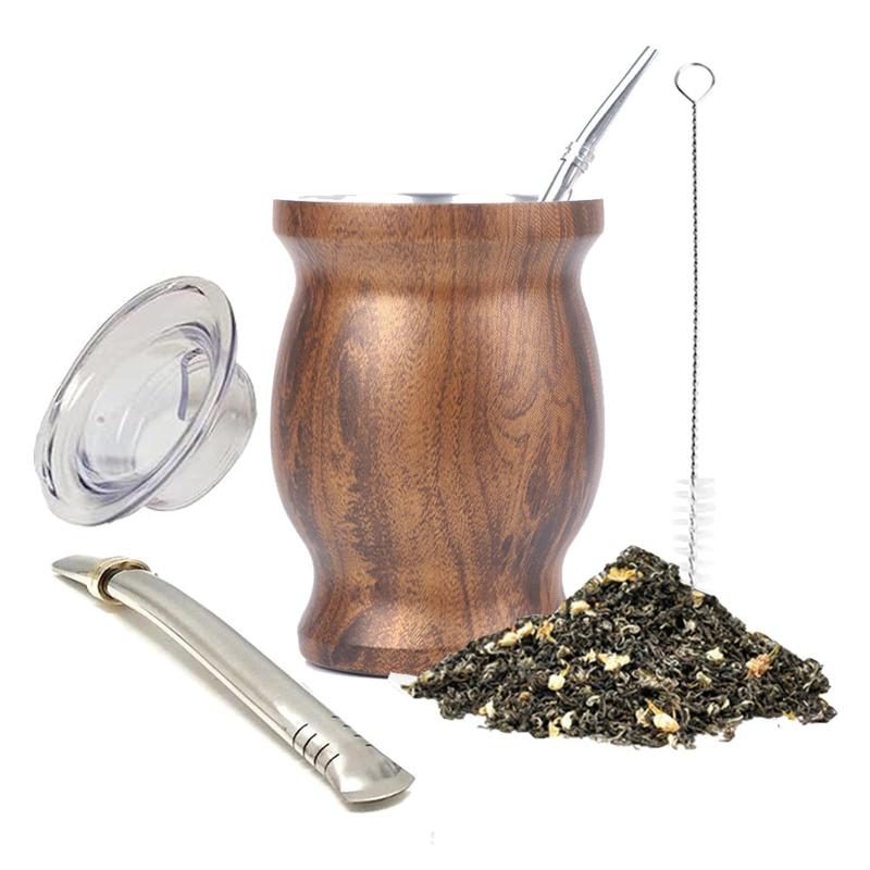 マテ茶カップ ステンレス製 マテ茶 マテゴードセット ストロー洗浄ブラシ付き 蓋付お手入れ簡単 部屋 オフィス プレゼント
