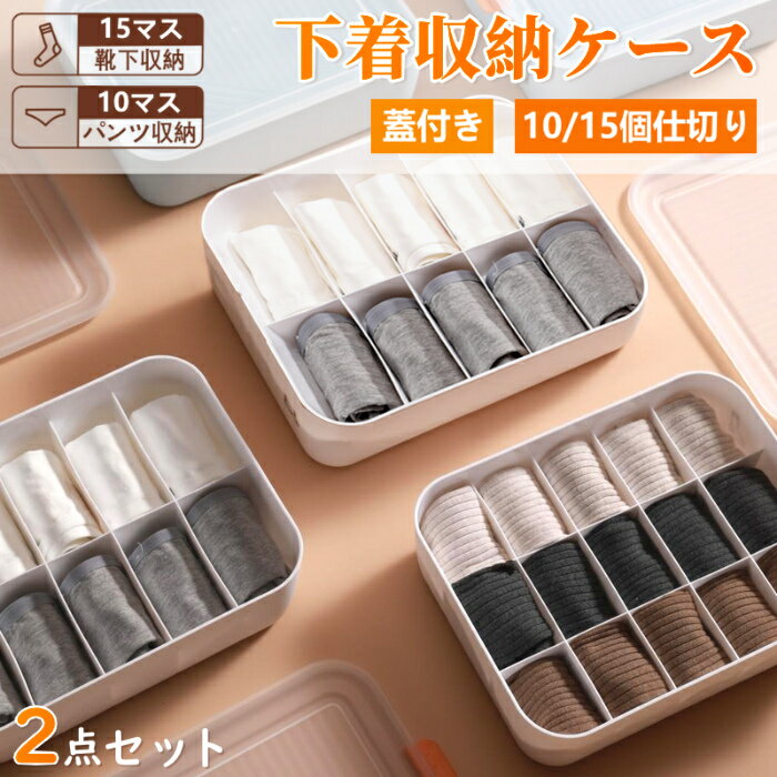 【クーポン配布中】【2個セット 】下着 収納ケース 仕切りボックス インナーボックス 10/15マス チェスト ランジェリー おしゃれ 蓋付き フタ付き 引き出し パンツ 靴下 ソックス 多機能 衣類 整理ケース インナーボックス ランジェリー収納 収納 仕切 既納 あす楽