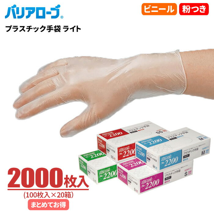 LeABLE バリアローブ No.2200-30 ビニール手袋ライト 【2000枚入(100枚入×20箱セット)】 薄くて丈夫、油や洗剤に強い使い捨てタイプのビニール手袋です。 リーブル 感染防止 粉付きタイプ 使い捨て手袋 使い切り手袋 ビニール手袋