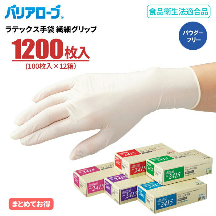 LeABLE バリアローブ No.2415 ラテックス手袋 繊細グリップ 【1200枚入(100枚入×12箱セット)】 しなやかに指先や手の平にピッタリフィット! リーブル 食品衛生法適合 粉なしタイプ 使い切り手袋 使い捨て手袋 ディスポ手袋 ゴム手袋 rev