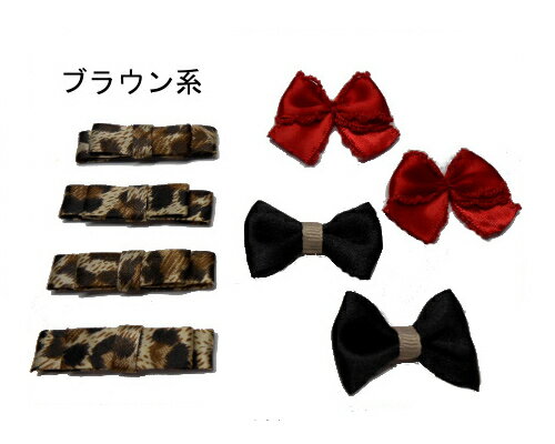 【サイズ】ヒョウ柄リボン:約1cm×4.5cm赤リボン:約3cm×4.5cm黒リボン:約2.5cm×4cm 【色】ブラウン系・ブラック系 【素材】ポリエステル 【入数】ヒョウ柄4個・赤2個・黒2個の計8個