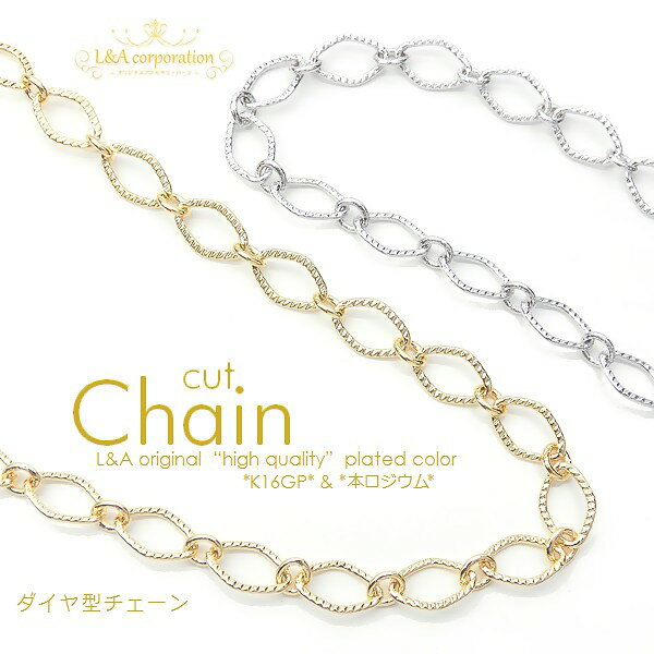 送料無料 5m1本 ダイヤ型チェーン ひし形 菱形 美しいカットチェーン 切り売り延長 長さ調整 高品質上質鍍金で変色耐久度up!K16GP&本ロジウム ネックレスブレスレットのアジャスターボディチェーンなどチェーンアクセサリーのハンドメイドに 5メートル