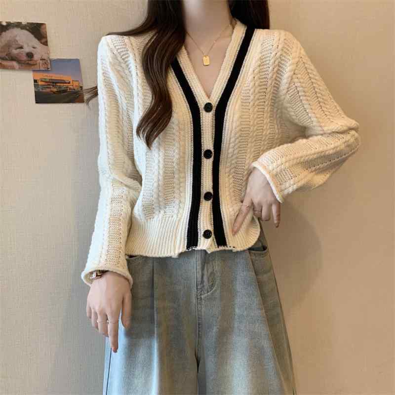 ・カテゴリ: セーター・スタイル: 日韓カジュアル・デザイン: カーディガン・主な素材: ナイロン 30-50%、アクリル 30-50%・柄: ストライプ・厚さ: 中厚・フィット: スリム・ネックライン: Vネック・袖丈: 長袖・袖タイプ: レギュラー・前立て: シングルボタン・加工: 高温定型・カラー展開: ブラック、オフホワイト・サイズ展開: ワンサイズ・セット内容: 単品・対象: 成人・性別: レディース