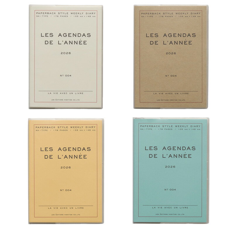 ハイタイドの2026ダイアリー、Poche(ポーシュ)。 本をテーマにカバーデザインされたポーシュは、海外のペーパーバックのような雰囲気がおしゃれ。 スピン(しおり)も付属しており、読書しているかのような気分で使用できます。 サイズは文庫本サイズのA6で、持ち運びにも便利。 詳細の予定を書き込めるウィークリータイプで、プライベートから仕事まで幅広く活躍します。 対応月は、2025年10月から2027年1月までの1年4か月です。 シンプルな構成で、自分のスタイルで好きなようにアレンジして使用できます。 日記帳としてもおすすめの手帳です。 サイズ:幅11 × 高さ15.3 × 奥行1.1 (cm) 重さ:156g 素材:紙 生産:日本 中紙カラー:パスピエクリーム スピン色:ライトグレー/イエロー カバー仕様:マーキングフラップ、ペンキャッチャー、スピン、コーナーポケット、クリアカバー 期間:週間/2025年9月29日~2027年1月3日、月間/2025年10月~2027年1月 ページ数:176ページ 内容:カレンダー、月間スケジュール、週間スケジュール、ノート、パーソナルデータ ●ハイタイドのその他のダイアリーはこちら>>からご購入いただけます。ハイタイドの2026ダイアリー、Poche(ポーシュ)。本をテーマにカバーデザインされたおしゃれな表紙が特徴です。中は詳細な予定を書き込めるウィークリータイプ。文庫本サイズで持ち運び用におすすめです。 「HIGHTIDE/ハイタイド」とは「満ち潮」の意。 人々のココロが満たされるような モノづくりを届けたい。 というコンセプトで文房具、雑貨などのアイテムを展開しています。 見ているだけで心がわくわくするような ユニークで上質なアイテムが豊富。創業25週年を迎え国内はもちろん、アジアやヨーロッパなど海外でも評判の文具ブランドを数多く扱っています。